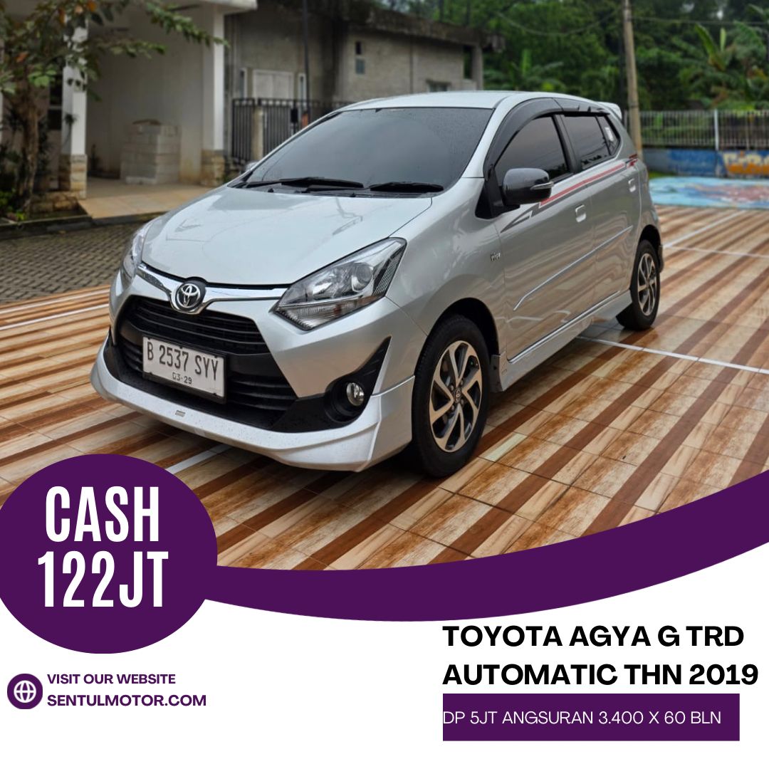 Toyota Agya G TRD Autometic 2019. Spesifikasi Kendaraan : ?BPKB dan STNK Asli ?Mobil Bebas Tabrak Dan Banjir ?Pajak 03 2026 ?KM 70.000 ?Transmisi Metik Responsif Normal ?Kaki² Normal ?Kelistrikan dan Elektrikal Mobil Normal ?Mobil Siap Pakai Bisa Cash dan Kredit ???????????? CASH Rp. 122 juta Nego KREDIT : DP 5 juta Angsuran Rp. 3.400.000 x 5 thnRead More